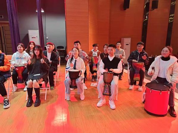 在邵华老师以及艺术教研室陈佳老师的组织和带领下,学生正在体验音乐治疗的相关活动