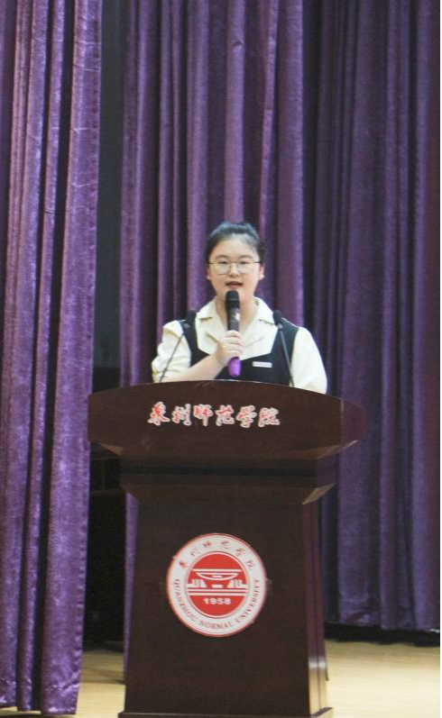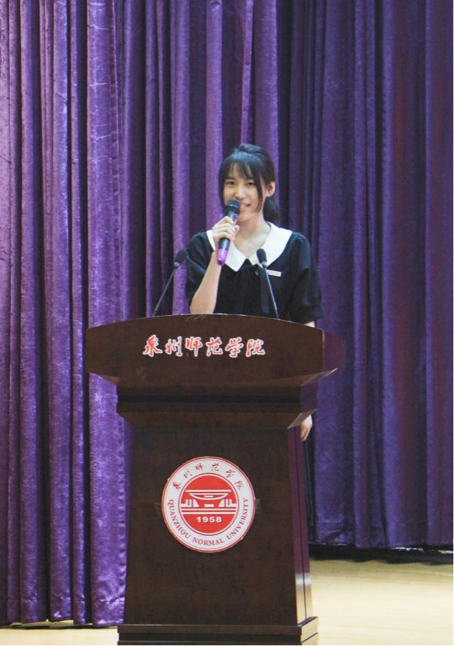 在校生代表、2021级本科生、大学生计算机设计大赛国家级二等奖获得者李白云首先代表教育科学学院全体在校生向2023级新生的到来表示热烈的欢迎与祝贺。她表示,青年强,则国家强。大学是一个锻炼才能、容错试错的大舞台,希望全体新生能够秉承着教科人一届又一届的良好风貌,在大学中尝试人生中的种种第一次,在大学的舞台上找到各种不尽相同的答案,尽情施展才干,锻炼自我,勇攀时代高峰。
