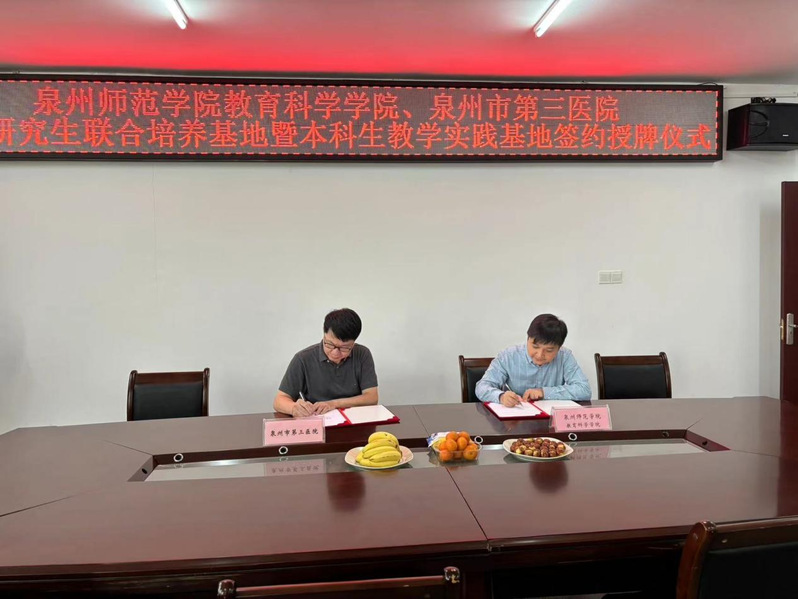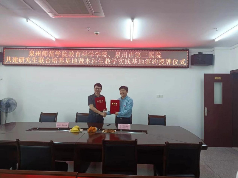 11月2日,我院与泉州市第三医院共建“研究生联合培养基地”“大学生实践基地”签约授牌仪式在泉州市第三医院举行,院长雷培梁、副院长邵华等人前往参加。泉州市第三医院院长王进义、副院长叶生方、纪委书记伊波等参加签约授牌仪式。