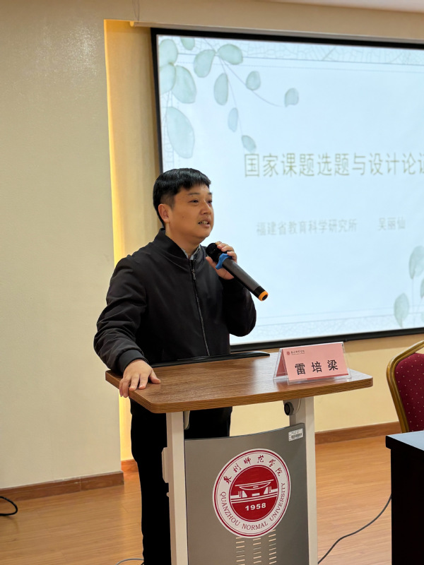 12月21日,福建省教科所教育政策研究室副主任吴丽仙博士应邀到教育科学学院开展“国家社科基金教育学课题的选题与设计论证”专题辅导讲座,讲座由教育科学学院院长雷培梁主持,教育科学学院教师积极参与了本次讲座。