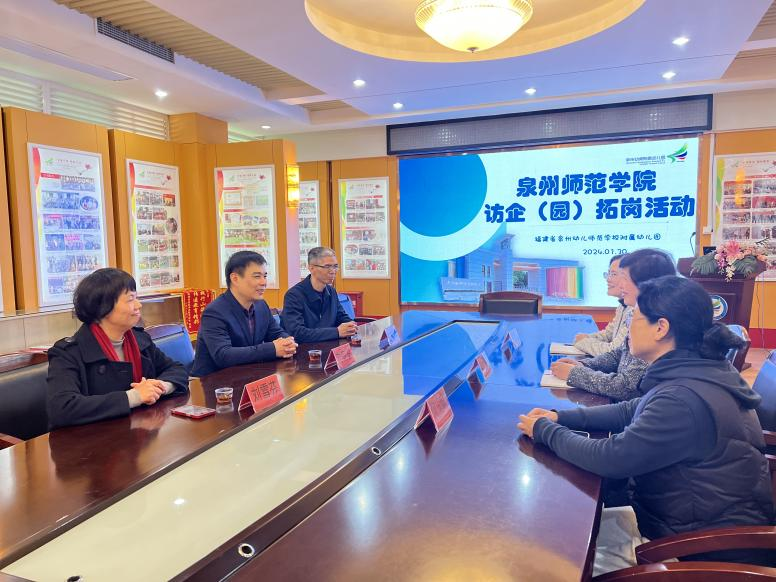 为拓展学前教育专业毕业生就业渠道,提升毕业生就业质量,新春伊始,教育科学学院党委副书记刘宗安带队前往福建省泉州幼师附属幼儿园、泉州市培尔巧康复服务中心开展访企拓岗促就业活动,学前与老年教育系主任叶增编,以及刘雪芬老师参与了此次活动。