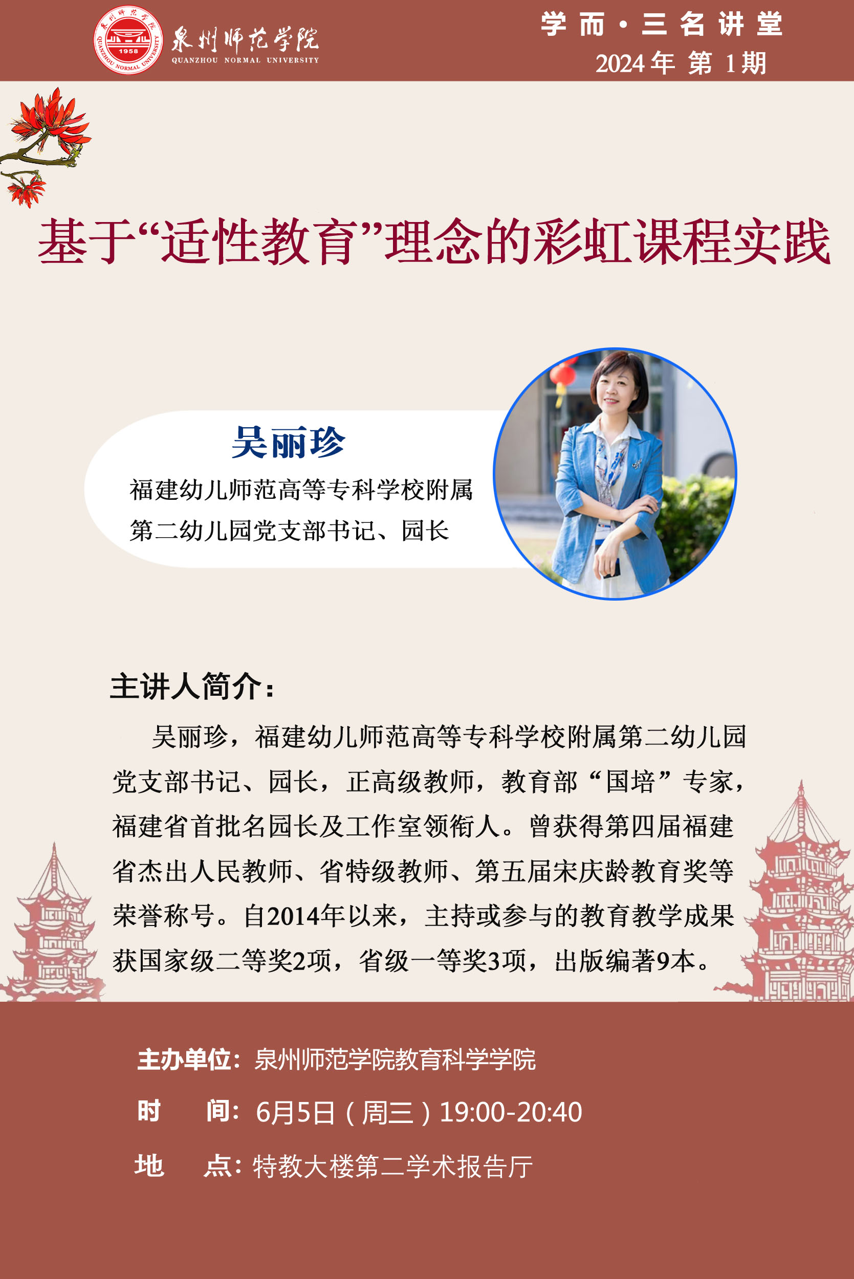 讲座预告:吴丽珍 《基于“适性教育”理念的彩虹课程实践》