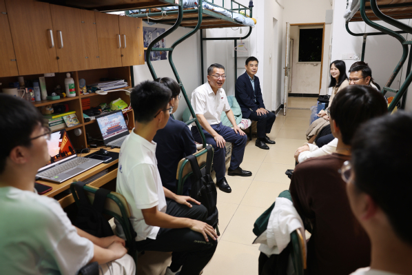 6月4日晚,校党委书记柯瑞清深入学生公寓区,实地走访我院毕业班学生宿舍,了解学生思想、生活和就业情况,与同学们亲切交流。