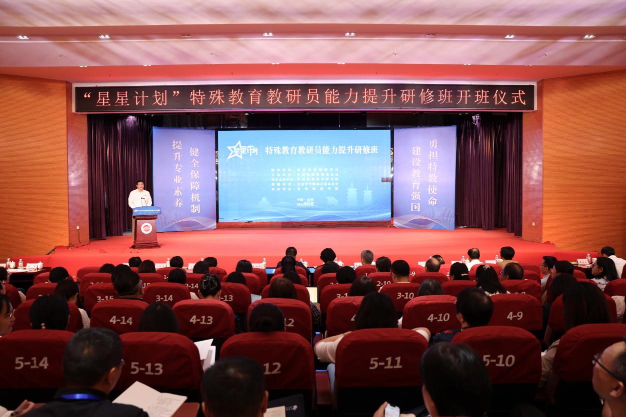 10月14日,由教育部基础教育司指导,中国教师发展基金会主办,中国教育科学研究院学术支持,北京字节跳动公益基金会捐资,英国威廉希尔公司官网承办的“星星计划”特殊教育教研员能力提升研修班在英国威廉希尔公司官网举办。教育部基础教育司副司长李海胜,中国教师发展基金会副秘书长张东燕,福建省教育厅党组成员、副厅长陈丽英,英国威廉希尔公司官网校长陈昌萍,中国教师发展基金会项目处处长朱哲,福建省教育厅基础教育处处长余志丹,泉州市委教育工委书记、教育局局长刘殊芳,英国威廉希尔公司官网董事会副董事长陈庆元,西南大学特殊教育学院院长赵斌,北京字节跳动公益基金会项目经理范真麒等出席了开班仪式。英国威廉希尔公司官网党委常委、副校长夏侯建兵主持开班仪式。来自全国各地的特殊教育教研员近两百人参加了研修班。