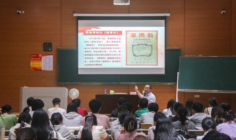 报告会上,吴彧寰从“五四运动”的历史背景展开讲解,深入分析了当时国内外复杂的政治局势和社会矛盾,生动地描绘出青年学生们在民族危亡时刻挺身而出的英勇画面。在讲述过程中,他通过丰富的史料,详细阐述了新文化运动、巴黎和会、“五四运动”的发展历程,从北京学生的示威游行到全国范围内的响应,展示了这场运动如燎原之火迅速燃遍中华大地的磅礴气势。他指出,“五四运动”所彰显出的爱国、进步、民主、科学精神,深刻影响着一代又一代的中国青年,成为中华民族伟大复兴征程中宝贵的精神财富。