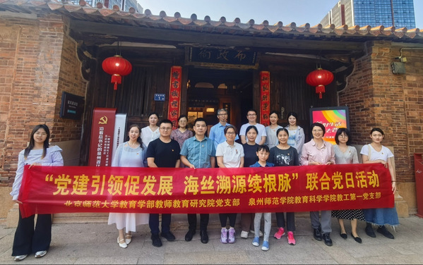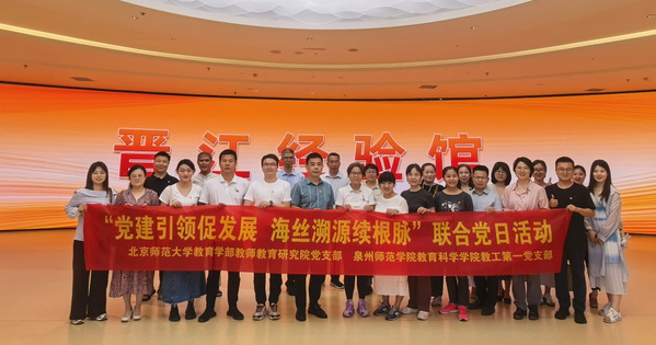 为深入学习贯彻党的二十大关于教育科技人才一体推进的战略部署,全面落实习近平总书记关于教育的重要论述,5月15日,教育科学学院教工第一党支部与北京师范大学教育学部教师教育研究院党支部联合开展“党建引领促发展,海丝溯源续根脉”主题党日活动。来自两个党支部的30余名党员骨干齐聚泉州晋江,通过实地研学、文化溯源、经验互鉴,探索党建与学科深度融合新路径,共绘新时代教育高质量发展蓝图。