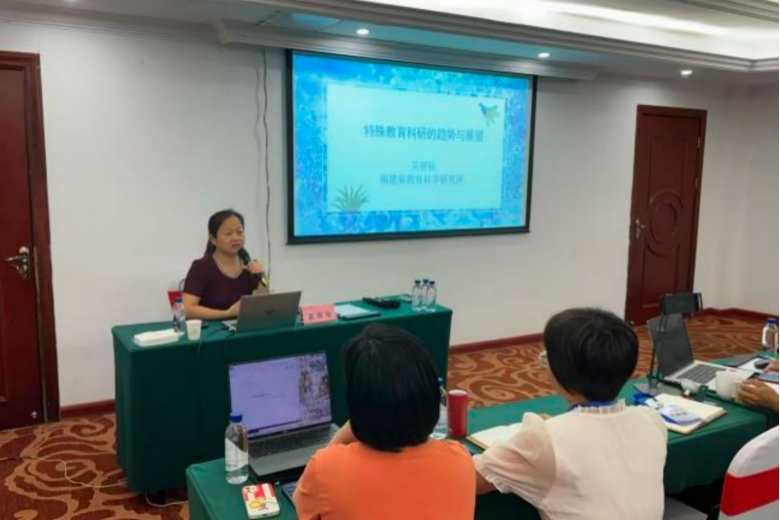 厦门市教科院教研员李玉影以《区域融合教育质量提升路径》为题,介绍了厦门区域融合教育的成功经验,展现了技术赋能融合教育的可行性,分享了凝聚学校、家长、社区育人合力的具体做法。福建省教育科学研究所副研究员吴丽仙指导学员了解特殊教育发展前沿与趋势,使学员对特殊教育领域科研与教学融合有了系统性认知,也进一步明确了开展特殊教育科研的价值与意义。