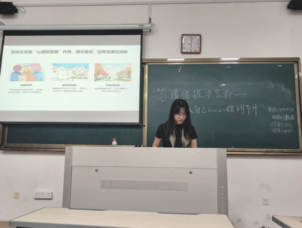为积极关注学生心理健康,提升学生情绪管理与自我调节能力,近日,学院面向23级与25级全体学生,组织开展了题为“与情绪握手言和——做自己的心理调节师”主题班会。本次主题班会以专题演讲与PPT展示为核心,为同学们带来了一场内容丰富、富有启发性的心理健康知识普及课。
