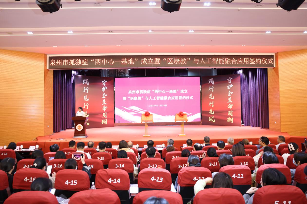 11月20日,泉州市孤独症“两中心一基地”成立暨“医康教”与人工智能融合应用签约仪式在我校举行。