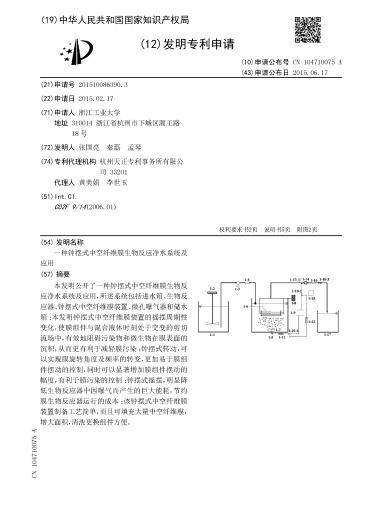 国家发明专利:一种钟摆式中空纤维膜生物反应净水系统及应用,CN201510086390.3;一种利用固定化光合细菌耦合膜反应系统处理废水的方法,CN201510099925.0;一种细菌载体颗粒的制作方法,CN201410717114.8。