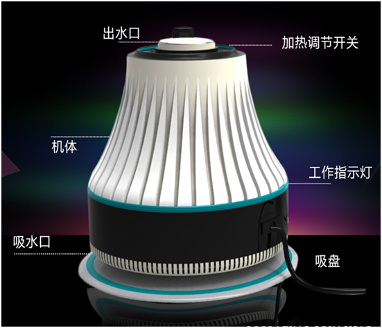 本实用新型公开了一种便携式免安装的淋浴器,包括机壳和安装于所述机壳的外底面上并放置于储水容器内的吸盘,所述机壳底端的周沿处环设有若干个有序排列的吸水口,所述机壳的内底面安装有吸水泵,所述吸水泵与一加热管相连通,所述加热管内安装有即热式的加热器,且所述加热管的上端安装有用于检测所述加热管内温度的温度控制器,所述加热管与一出水管相连通,所述出水管的相应端连接至所述机壳的上侧面;还包括有控制电路,所述吸水泵的驱动电机连接至所述控制电路中,所述加热器的输入端与所述控制电路的相应端电连接,所述温度控制器的控制端与所述控制电路的相应端电连接。此淋浴器无需安装即可使用,且体积相对较小,方便携带。产品外观结构设计完整,可进行手板制作和小批量试产。(专利号:ZL 2016 2 1272240.8)