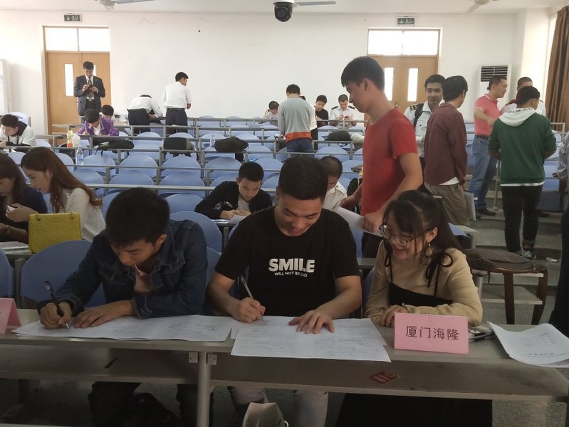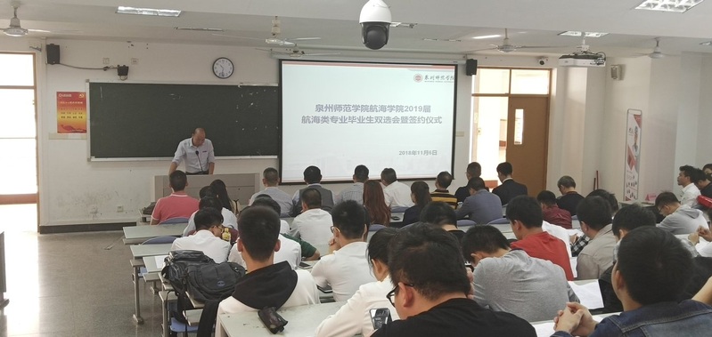 2018年11月6日上午,航海学院在荣茂楼303教室举行英国威廉希尔公司官网航海学院2019届航海类专业毕业生双选会暨签约仪式,航海学院院长曾文章、院党委书记苏国柱、辅导员李小兵、侯栋梁、陈志强出席本次双选会,参与招聘的共计九家来自全国各地的船务公司,分别为:1.泉州中泉国际经济技术合作(集团)有限公司2.中挪诺航船务有限公司3.厦门泛海国际船舶管理有限公司4.泉州兴诺信船务有限公司5.厦门海隆对外劳务合作有限公司6.北京鑫裕盛船舶管理有限公司7.北京华洋海事中心8.上海森海海事服务有限公司9.厦门湾海上旅游客运有限公司。