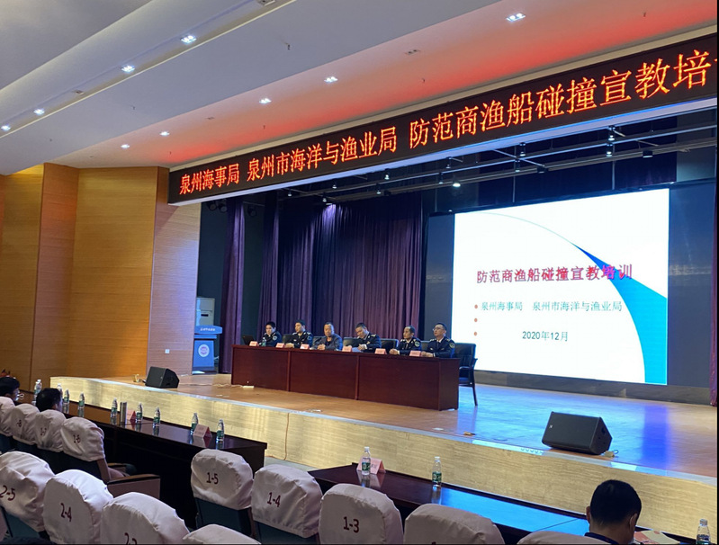 12月11日下午,泉州海事局联合泉州市海洋与渔业局在我校特教大楼第一学术报告厅举办防范商渔船碰撞宣教培训会。航海学院院长、海员培训中心主任,泉州海事学校、泉州海洋职业学院、泉港航运学校部分教师、航海学院学生代表参加了培训会。培训会由泉州市海洋与渔业局执法大队队长林晓峰主讲,泉州海事局船舶处处长陈小明主持。