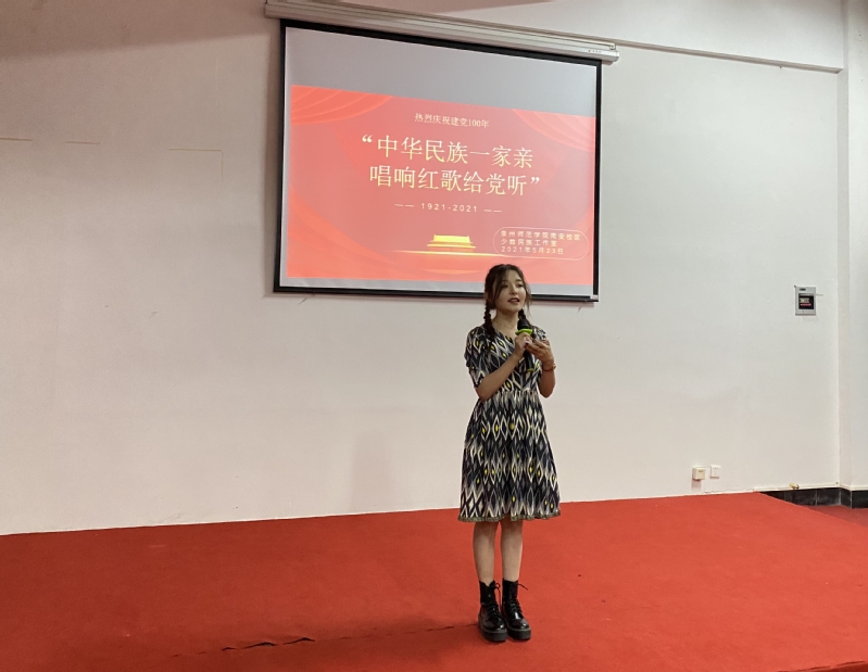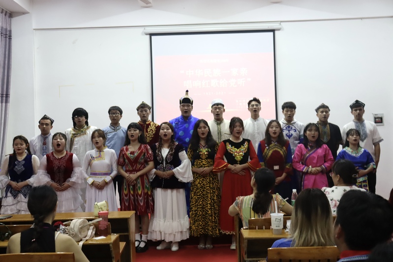 少数民族预科班娜扎主持唱红歌活动