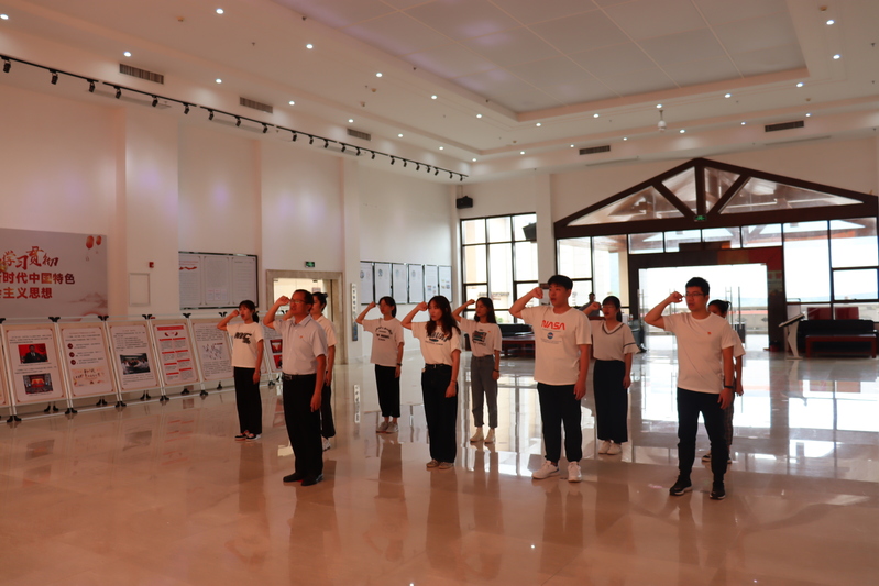 参观期间,同学们在洪少春书记的引领下重温入党誓词。大家面对党旗,右手握拳,庄严宣誓。