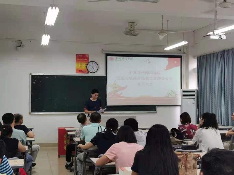 大会首先在雄壮的《国歌》声中拉开序幕。按照党支部选举的有关规定和程序,大会依次进行了:通过选举办法、公布候选人名单,介绍候选人情况,推选监票、计票工作人员并经大会表决通过,经全体党员无记名投票,差额选举产生了教工党支部第一届委员会5位委员,而后召开支部委员会议,选举王玉国同志担任党支部书记、黄文燕同志担任副书记,郭凯琳同志负责组织委员工作、童俊炜同志负责宣传委员工作、柯荣钦同志负责纪检委员工作。