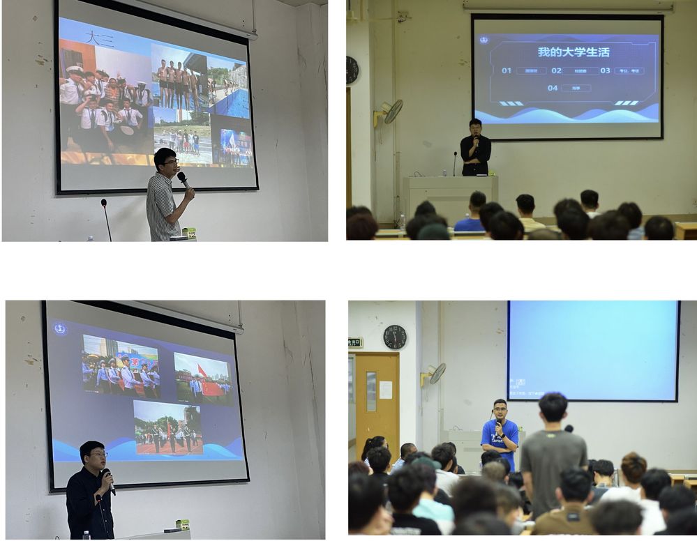 四位校友各自带来自己在大学及工作时期的照片,分别讲述了自己在大学时期的学习、生活及学生会中的任职经历,分享了他们在学期间的学习方法、时间管理和心态调整等方面的心得体会,并以亲身经历告诉在座的同学们大学期间自主学习的重要性。