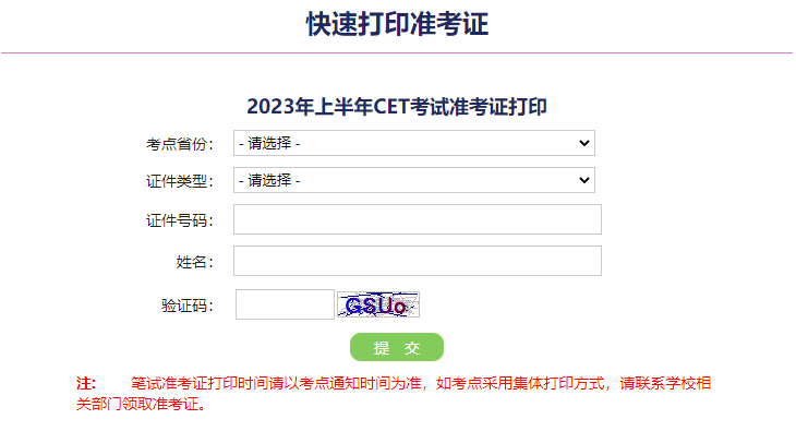 2.输入省份、证件类型、证件号码、姓名等信息即可打印准考证。