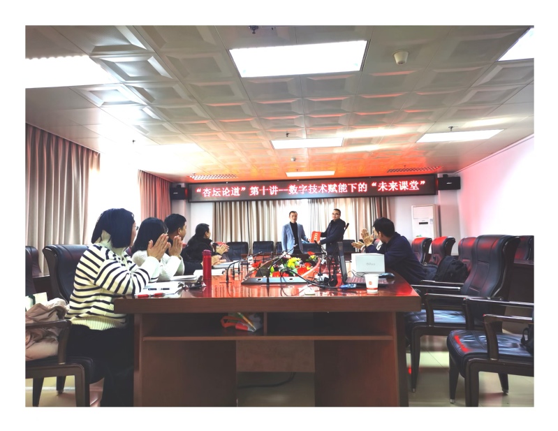 为进一步提升学校教师信息素养,助推学校教育数字化高质量发展,2025年1月9日,学校“杏坛论道”第十讲在行政楼406举行。活动邀请了教育科学学院数字媒体技术系主任吴伟信副教授主讲了一场主题为《数字技术赋能下的“未来课堂”》的讲座。教务处相关负责人及第五届福建省教师教学创新大赛参赛教师参加。