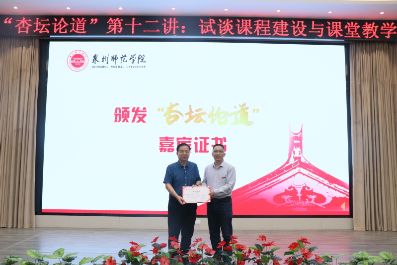 教务处相关负责人主持讲座,并为刘三阳教授颁发了“杏坛论道”嘉宾证书。(教务处)