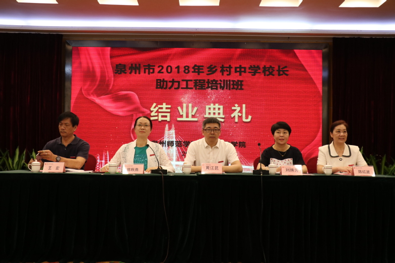2019年5月31日,我校举行泉州市2018年乡村中学校长助力工程培训班结业典礼。继续教育学院负责人和培训班的85位学员参加了结业典礼。校党委常委、副校长黄江昆、泉州市教育局副局长刘殊芳出席结业式。继续教育学院院长陈秋燕主持了本次结业仪式。