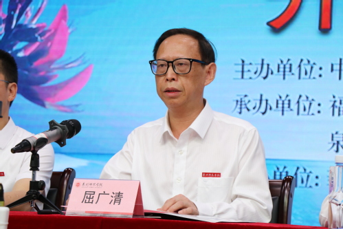 屈广清代表学校致辞。他指出,我校作为福建省海外华文教育基地,学校高度重视与菲律宾华文教育界的交流与合作,承办菲律宾、马来西亚、泰国等华裔青少年“寻根之旅”活动,吸引海外留学生来校学习和进修,做大海外华文教育,加强与“一带一路”沿线国家的交流合作,传播中华优秀传统文化。学校承办菲律宾华校校长(管理人员)研习班,将进一步促进中菲华文教育交流走向新阶段。他希望全体学员们学有所获、学有所成,用学到的知识增长才干、提高技能,在华文教育平凡的岗位上,做出不平凡的业绩。