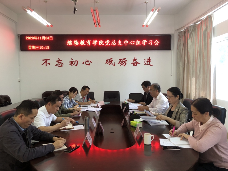 11月4日上午,学院在文A315会议室召开党总支中心组学习会,学习习近平总书记教师节重要寄语精神。学院党总支委员、教工支部书记及各科室负责人参加会议,党总支书记陈建宁主持学习会。