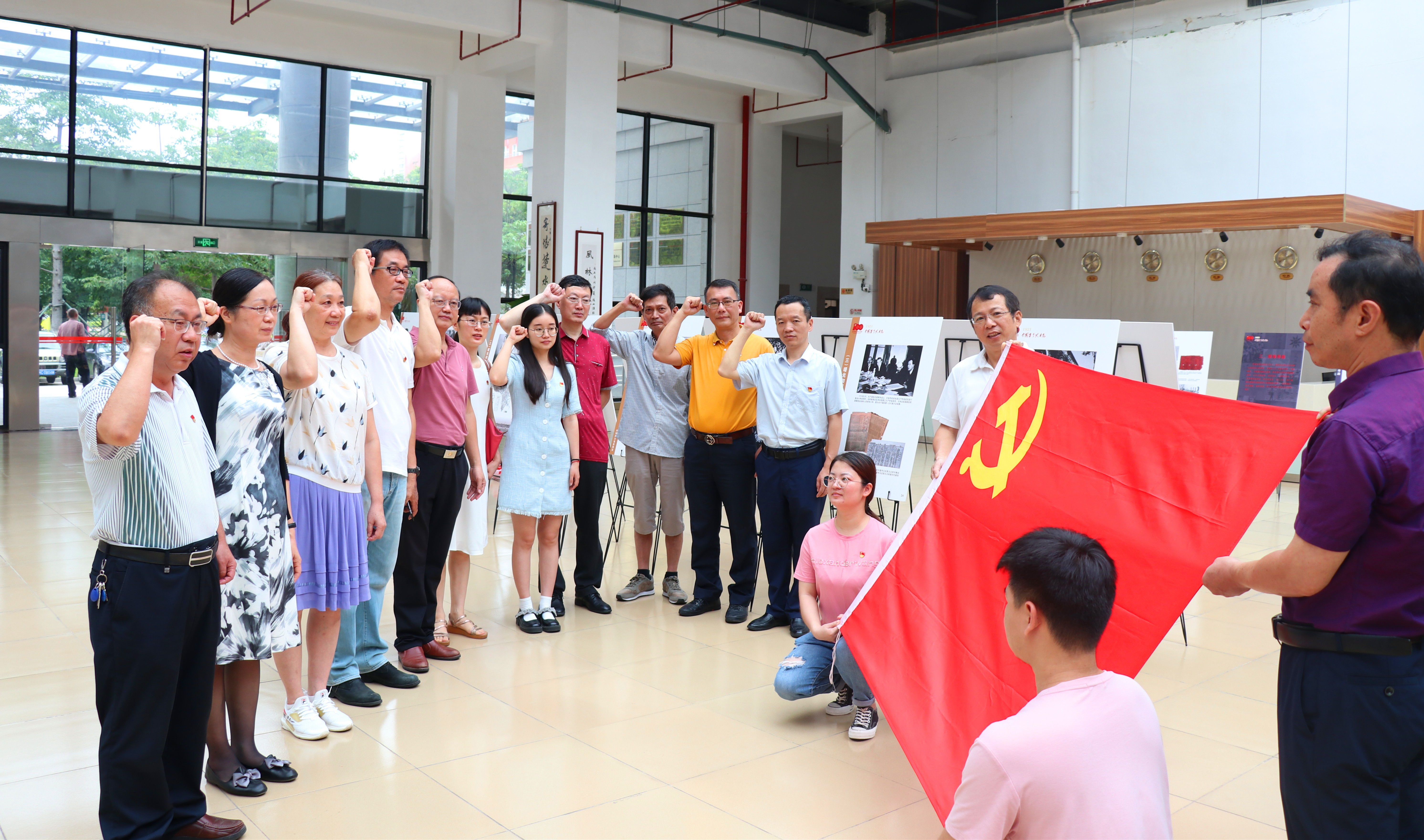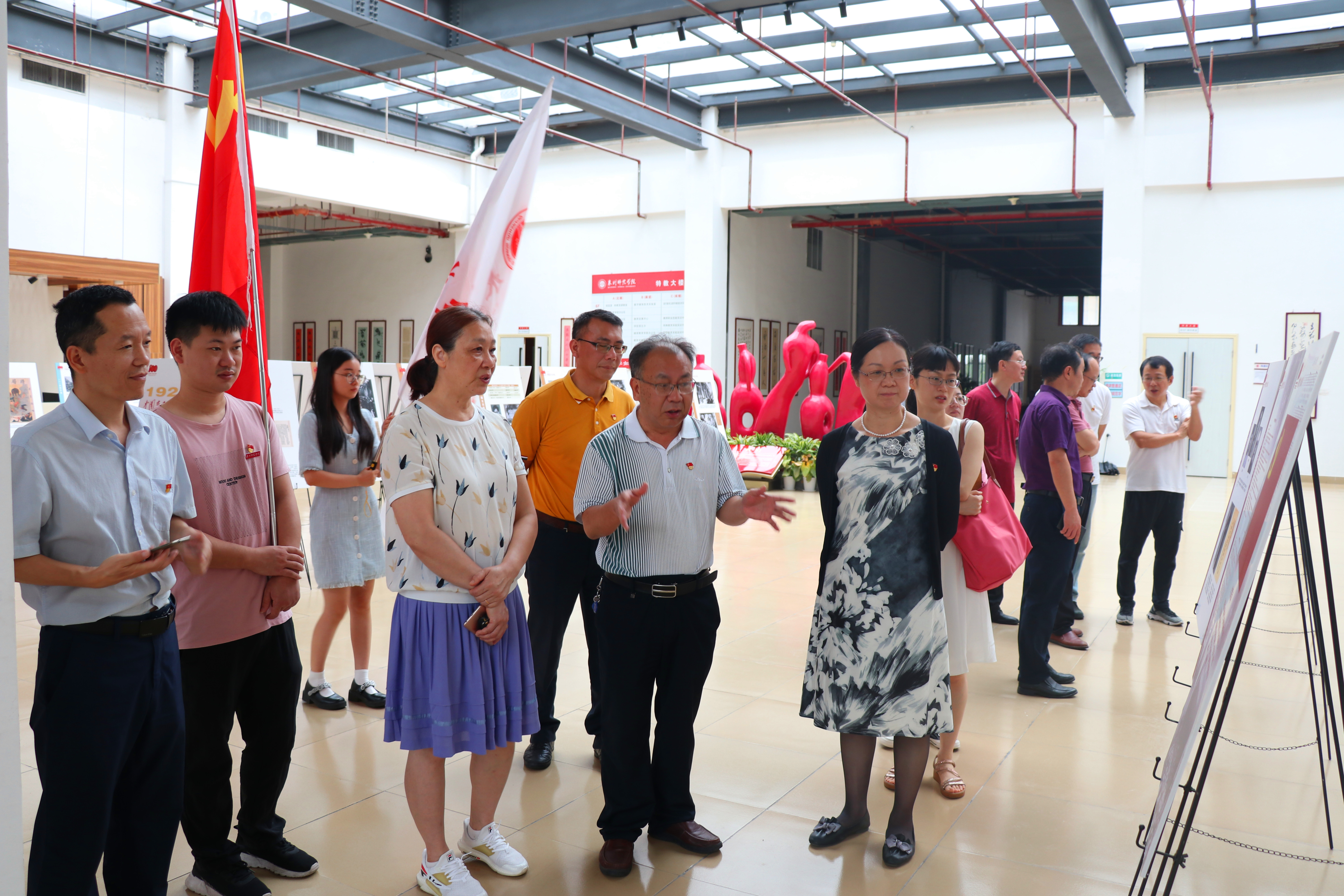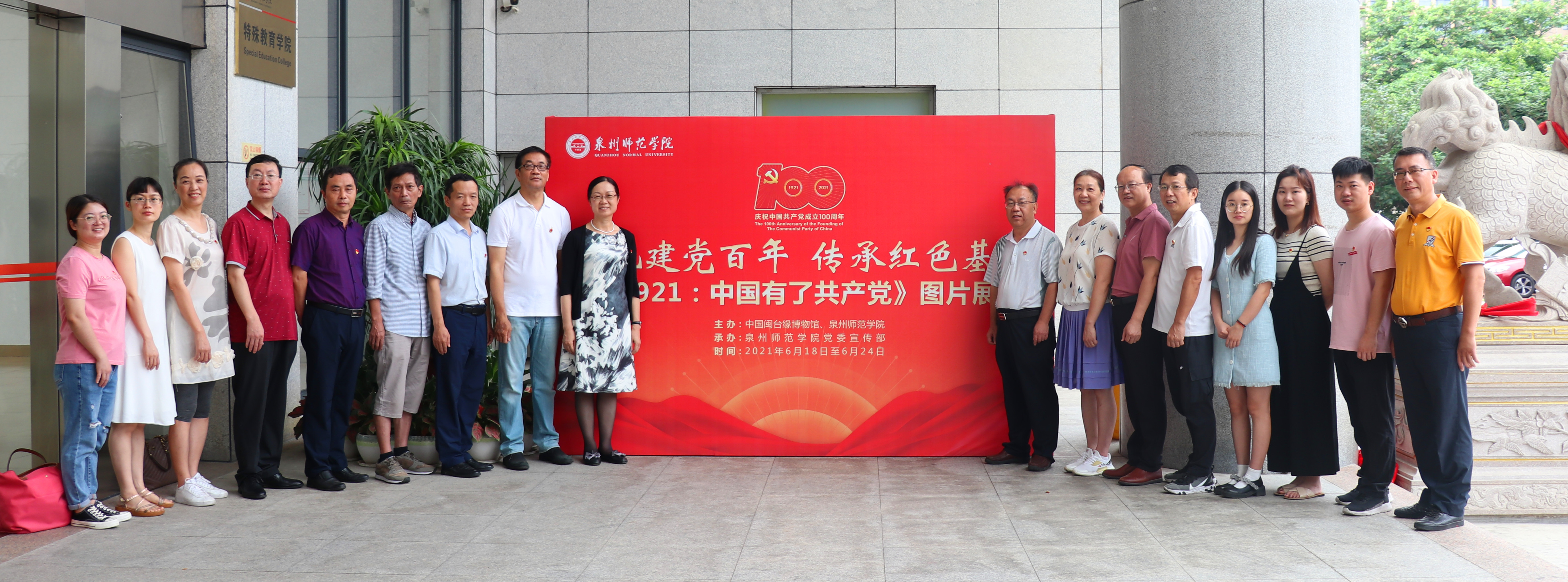 6月24日上午,继续教育学院全体党员在校特教大楼一楼大厅参观“献礼建党百年 传承红色基因”——《1921:中国有了共产党》图片展。展览包括“内忧外患”、“艰难寻路”、“曙光初现”、“开天辟地”等四个部分内容,直观、生动地阐明中国共产党的诞生是中国革命发展的客观需要,是马克思主义同中国工人运动相结合的产物,是中国社会历史发展的必然。