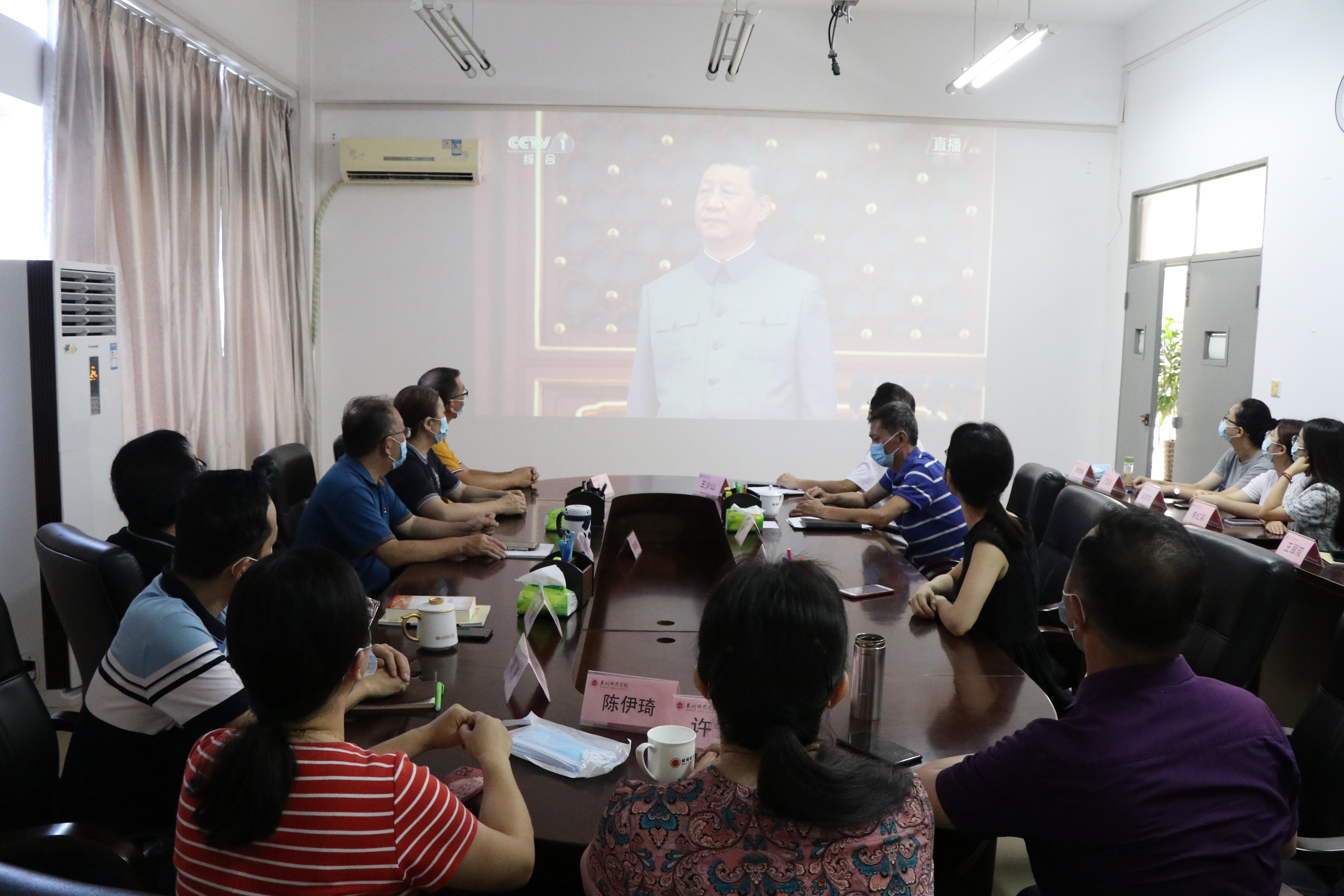 实况直播结束后,学院党总支召开专题学习会,指出,习近平总书记的重要讲话回顾了中国共产党团结带领中国人民不懈奋斗的光辉历程、开辟的伟大道路、创造的伟大事业、取得的伟大成就和铸就的伟大建党精神,向全世界庄严宣告实现了第一个百年奋斗目标,吹响向第二个百年奋斗目标前进的战斗号角。讲话内容丰富、思想深刻,是一篇马克思主义纲领性文献,对于指导我们在新的征程上进行伟大斗争,践行初心使命,全面建成社会主义现代化强国具有十分重要的意义。