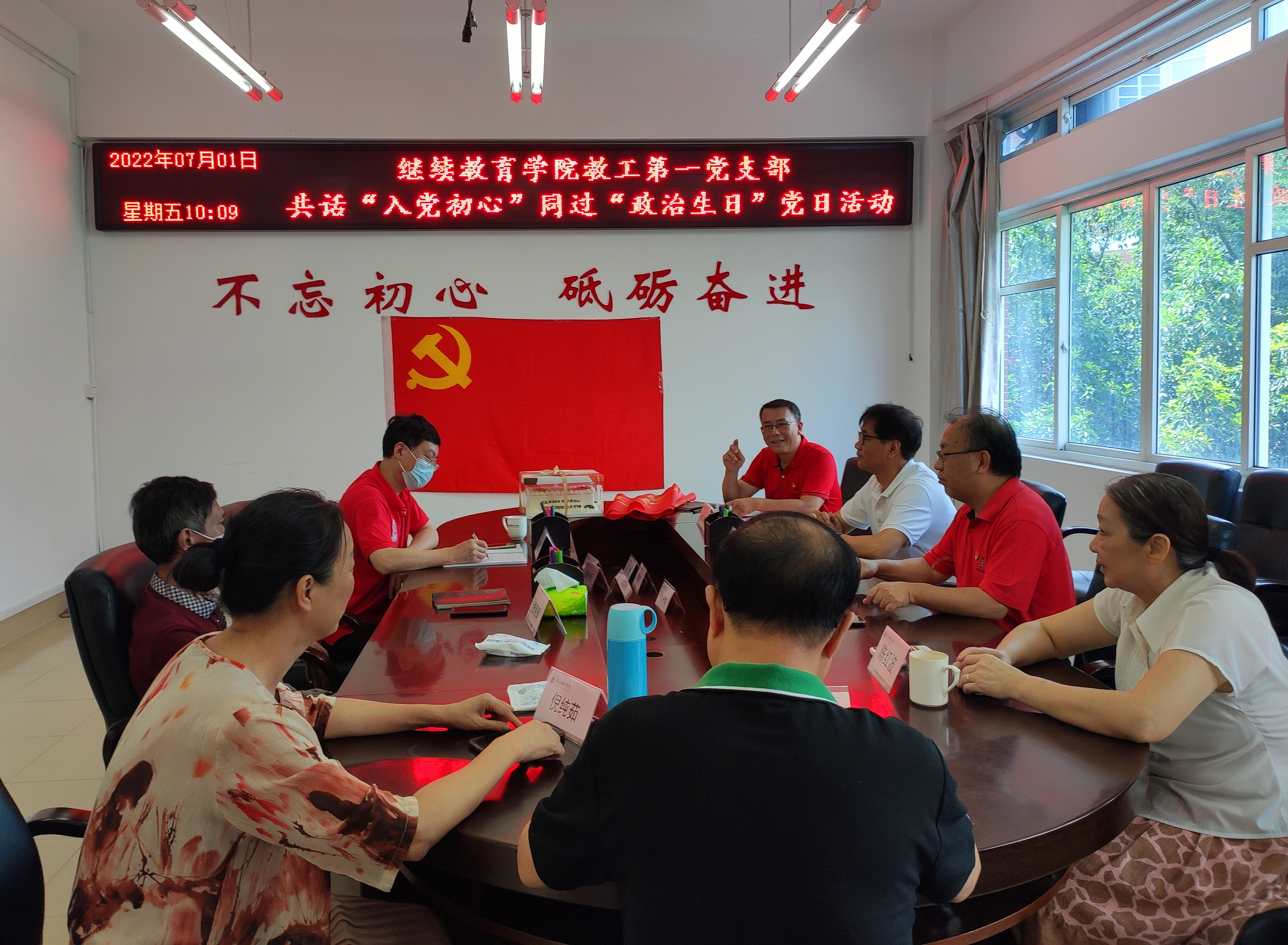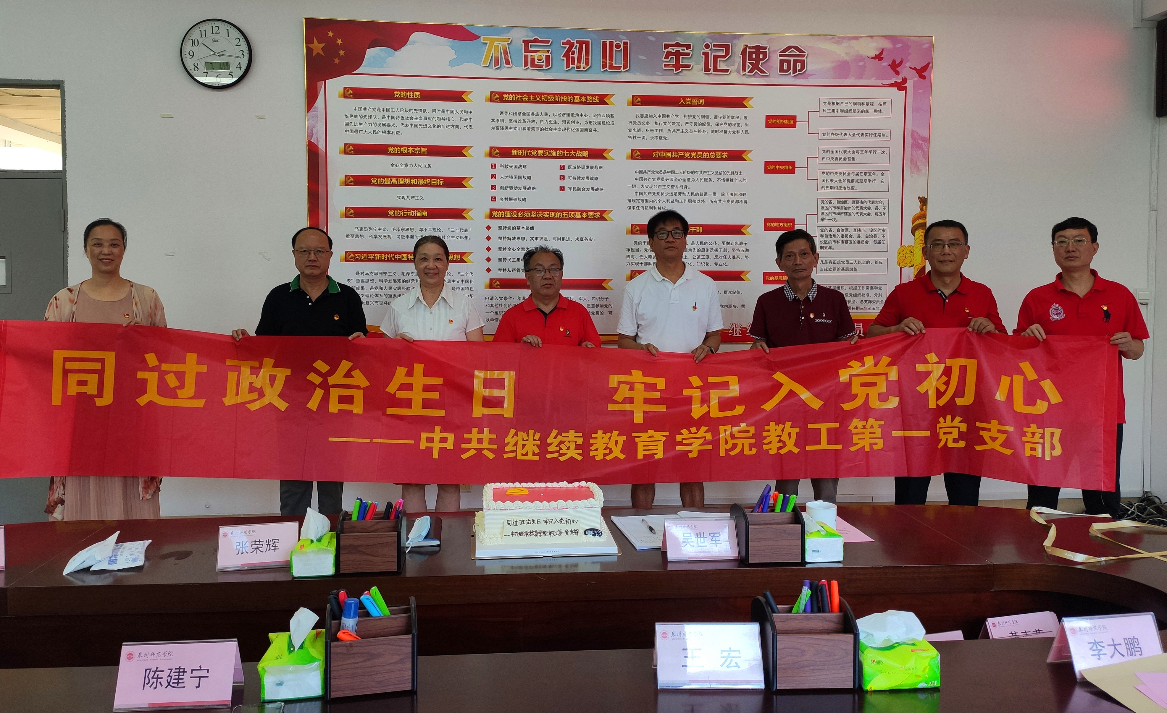 在中国共产党成立101周年之际,为进一步强化党员身份意识、宗旨意识和责任意识,切实发挥先锋模范作用,增强基层党组织的创造力、凝聚力、战斗力。7月1日,继续教育学院教工第一党支部组织开展“共话入党初心 同过政治生日”主题党日活动,重温入党誓词、讲述入党故事,品尝生日蛋糕,带领党员过 “政治生日”。学院党总支委员、副院长王宏受邀参加活动。