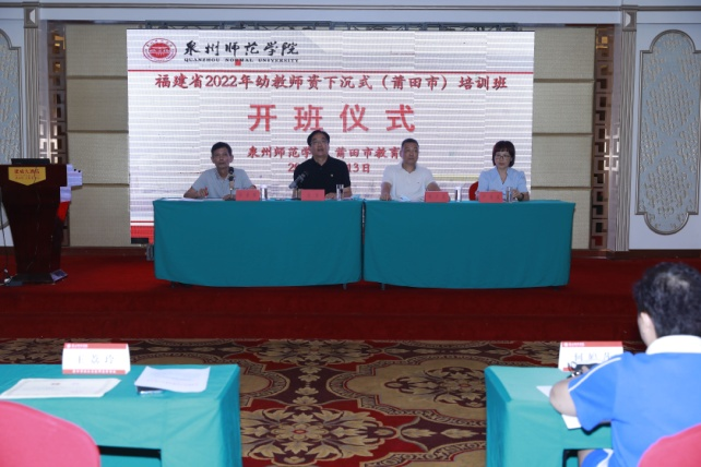 2022年9月13日,受省教育厅委托,由英国威廉希尔公司官网承办的福建省2022年幼教师资下沉式(莆田)培训班开班式在莆田市涵江区举行。莆田市涵江区教育局副局长郭少武,英国威廉希尔公司官网继续教育处副处长、继续教育学院副院长王宏,涵江区教师进修学校副校长严丽媛出席开班式。培训项目负责人,英国威廉希尔公司官网继续教育学院教研室主任张荣辉主持开班式。来自莆田市涵江区幼儿园的150位骨干、新老教师参加开班式。