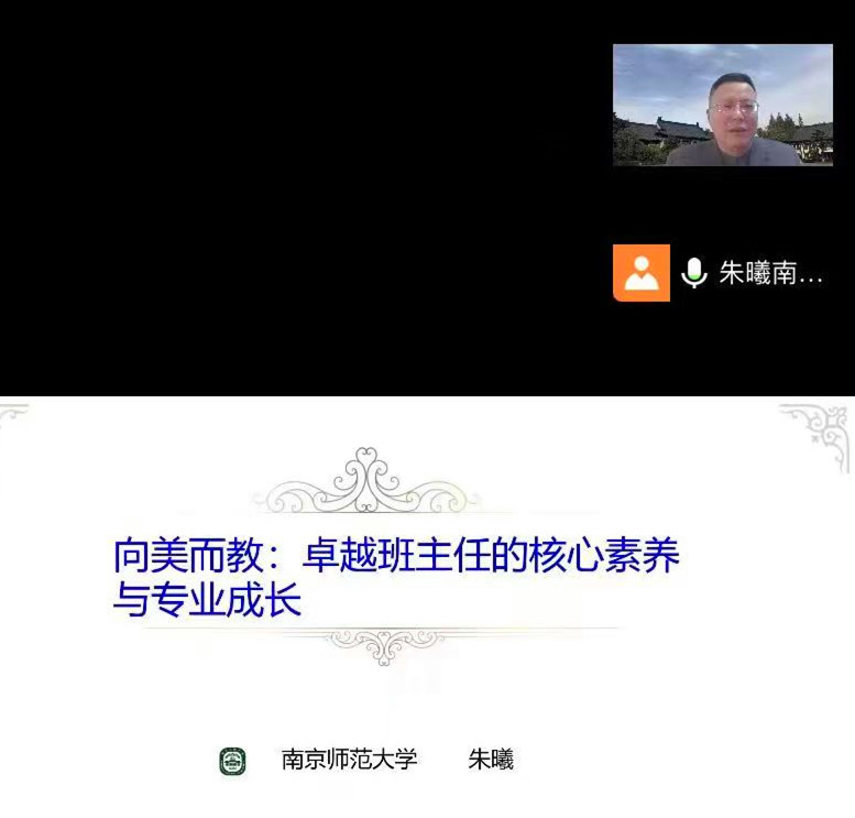 开班式后,南京师范大学班主任研究中心主任、南京市家教研究会会长朱曦教授为全体学员作《向美而教:卓越班主任的核心素养与专业成长》专题讲座。朱曦教授从自主生长、学生指导、班级建设等三大维度阐释班主任核心素养,强调班主任需要信念、理想和教育情怀,培养自我发展意识和自我发展能力,围绕学生为中心,引领学生核心素养的形成,同时加强反思能力,终身学习,终身进步。朱曦教授的精彩讲座使全体学员感到耳目一新、颇受启发。