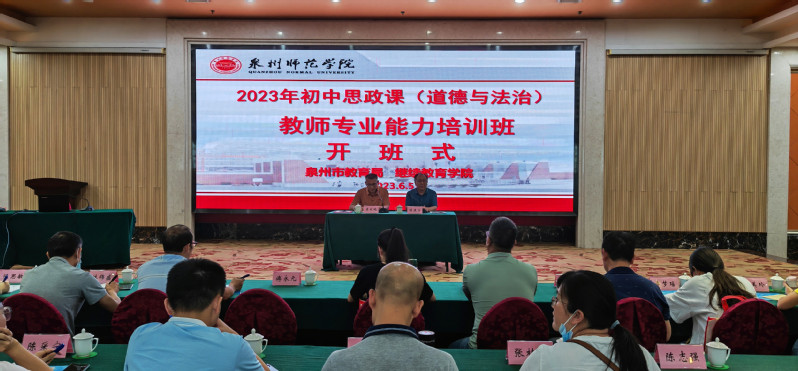 6月5日下午,由泉州市教育局主办、我院承办的“2023年泉州市初中思政课(道德与法治)教师专业能力培训班”举行开班仪式。继续教育学院党总支书记陈建宁、培训中心项目组全体成员及来自泉州市直学校和13个县市区的近80名学员参加开班仪式。