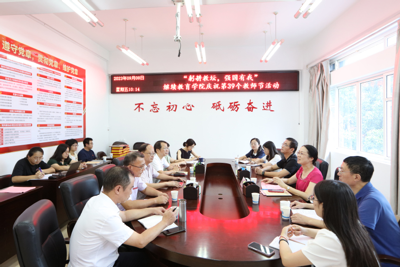 为进一步深入贯彻落实习近平总书记关于教育和教师系列重要论述精神,营造尊师重教氛围,9月8日上午,继续教育学院以“躬耕教坛,强国有我”为主题开展了第39个教师节座谈会。学院从教满三十年教师及青年教师代表共同参加。座谈会由院长陈秋燕主持。