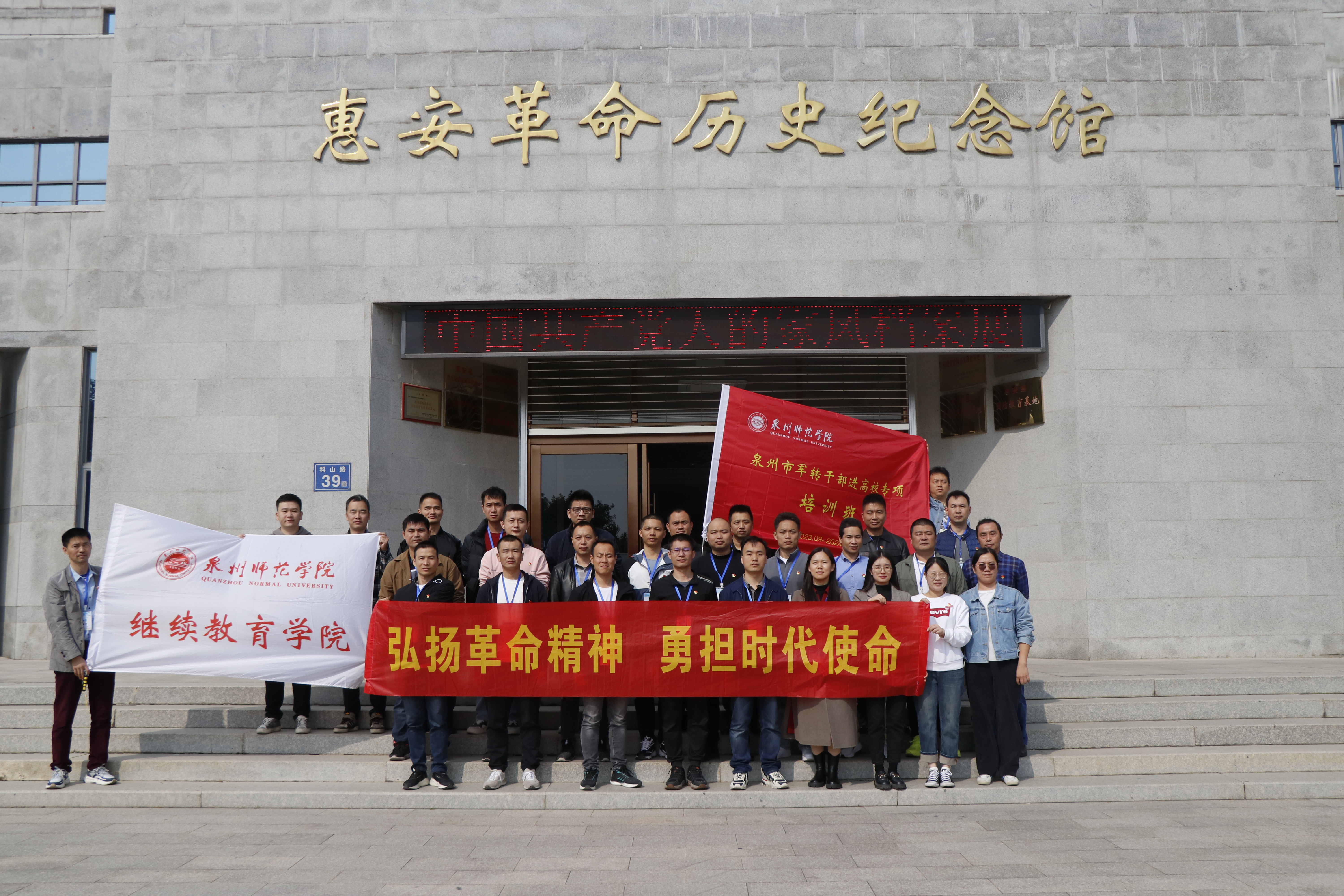 根据上级文件要求,11月24日,继续教育学院组织2023年军转干部培训班赴台商投资区、惠安县开展以“弘扬革命精神,勇担时代使命”为主题的现场教学活动。