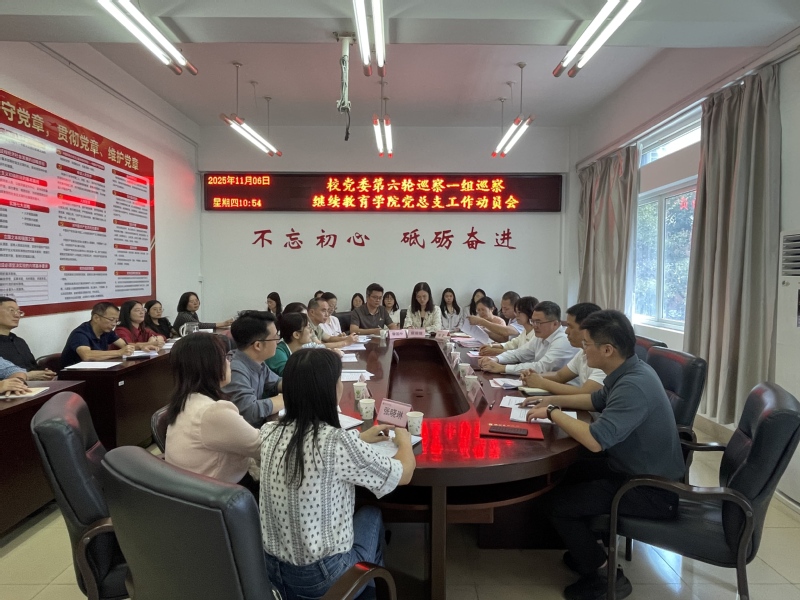 巡察办负责人、巡察一组副组长陈昭阳及有关同志,继续教育学院全体教职工、军转支部委员出席会议。