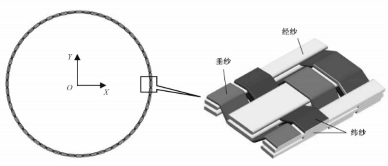 碳纤维管状复合材料可作为轻质高强管状结构件进行应用,其应用领域包括:结构型材、传动轴、输送管道、防护管、运动器材、医疗器材、航空航天部件、车用部件、建筑结构件、军工器材、机器人部件等。三维圆织成型方法是基于圆织成型原理形成的一套用于织制无缝三维管状织物的复合材料纺织成型方法。这种方法通过将经纱沿圆周排列,通过梭子将各层的纬纱引入织物成型,并同时依靠垂纱的引入将各层组织连接成一个不可分的整体,形成三维立体织物组织。这种成型方法在前期经过了手织验证,现已成功通过圆织机的机织试验。纬向垂纱法是三维圆织成型法的一种形式,纬向垂纱法主要采用引纬器以纬纱引入的方式向织物内引入垂纱,通过控制经纱的开口规律实现垂纱在各层织物间的连接捆绑作用,不需要专门设计垂纱引入机构,从而大大简化了机构复杂程度。经向垂纱法中,每一层织物的成型原理与纬向垂纱法类似,不同的是经向垂纱法不利用引纬器引入垂纱,而是将一部分经纱作为垂纱使用,在普通的经纱形成开口与对应层的纬纱交织后,经垂纱在多层之间进行交织从而形成立体织物。经向垂纱法的优点是垂纱可像经纱一样连续供给。但在成型过程中,垂纱也需要像经纱一样进行开口控制,而且需要多根垂纱才能完成对多层组织的连接。圆织机主要可分为两种:凸轮式圆织机和分线盘式圆织机。为了获得三维管状织物,这两种圆织机都需要在功能上实现扩充。相比而言,提花式凸轮圆织机对于花色的选择灵活度更大,除了用于成型三维管状织物,对于圆形织物新组织的开发也更有优势。