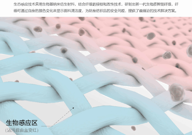 生态感应技术可通过天然萃取物与纤维制品的有机结合,赋予纤维、纱线和织物自感知清洁度的功能,其制成的织物可广泛运用于毛巾、床上用品、贴身衣物和婴童产品上。该技术已受到了央视等权威媒体的高度关注并与行业龙头企业展开了深度合作。