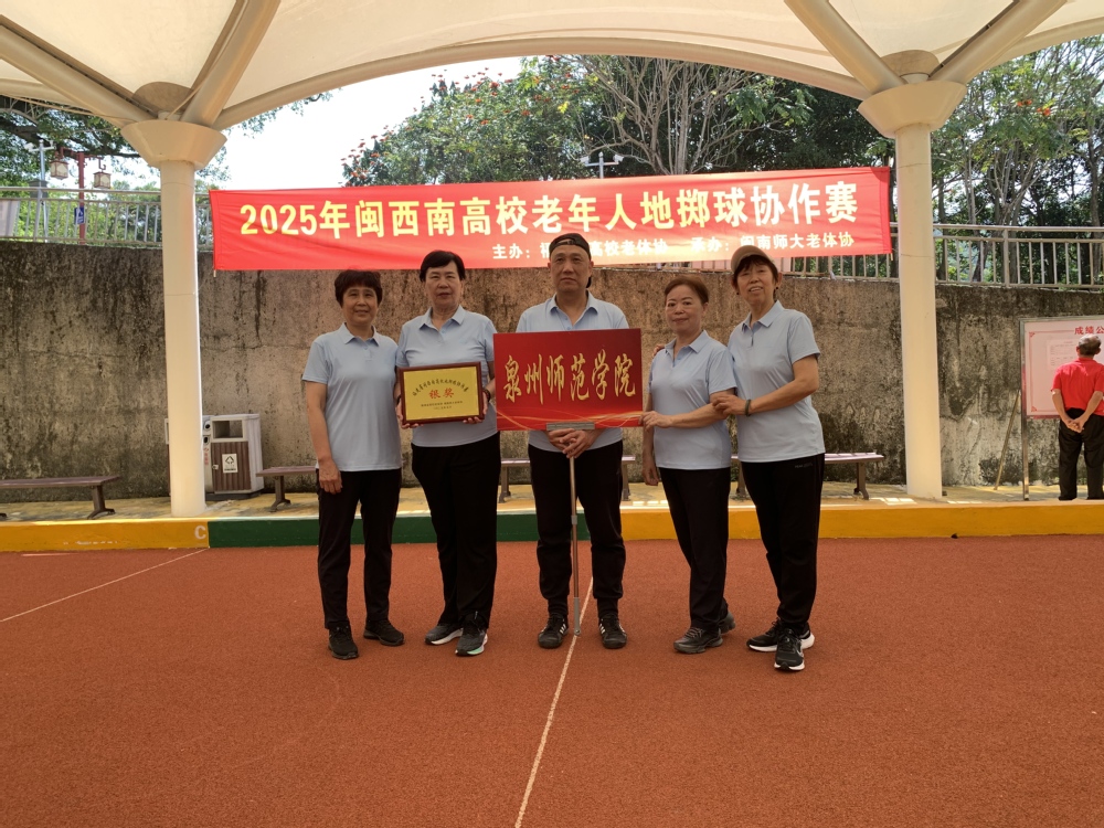 2025年闽西南高校地掷球协作赛于5月13日至14日举办,参加交流赛的代表队共有七所高校。赛场上,我校代表队沉着冷静,通力协作,凭借多年在一起训练的默契、多次参加比赛的经验和技战术的灵活运用,最终摘获银牌。作为下一届比赛的承办单位,我校老体协还与闽南师范大学老体协完成了交接仪式。