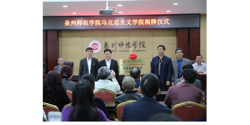 12月13日上午,学校在行政楼101会议室举行马克思主义学院揭牌仪式,省委教育工委副书记王建南,省教育厅思政处处长陈晓风,市教工委委员、市教育局副局长王瑞钦,校领导游小波、李清彪、高云程、林伟、王珊、陈亚兵、邱银富,华侨大学马克思主义学院院长、博士生导师林怀艺教授,泉州医学高等专科学校、泉州幼儿师范高等专科学校等泉州高校思想政治理论课教研部负责人出席揭牌仪式,我校有关职能部门负责人及二级党委(党总支)书记、全体辅导员、马克思主义学院教师、学生代表参加会议。校党委副书记林伟主持揭牌仪式。