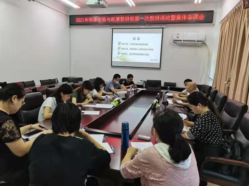 10月7日,马克思主义学院召开2021年秋季形势与政策教研部第一次教研活动暨集体备课会,本次备课会以“共同构建人与自然生命共同体”为专题内容,学院院长刘玉生、副院长郑长青以及形势与政策教研部全体教师参会。