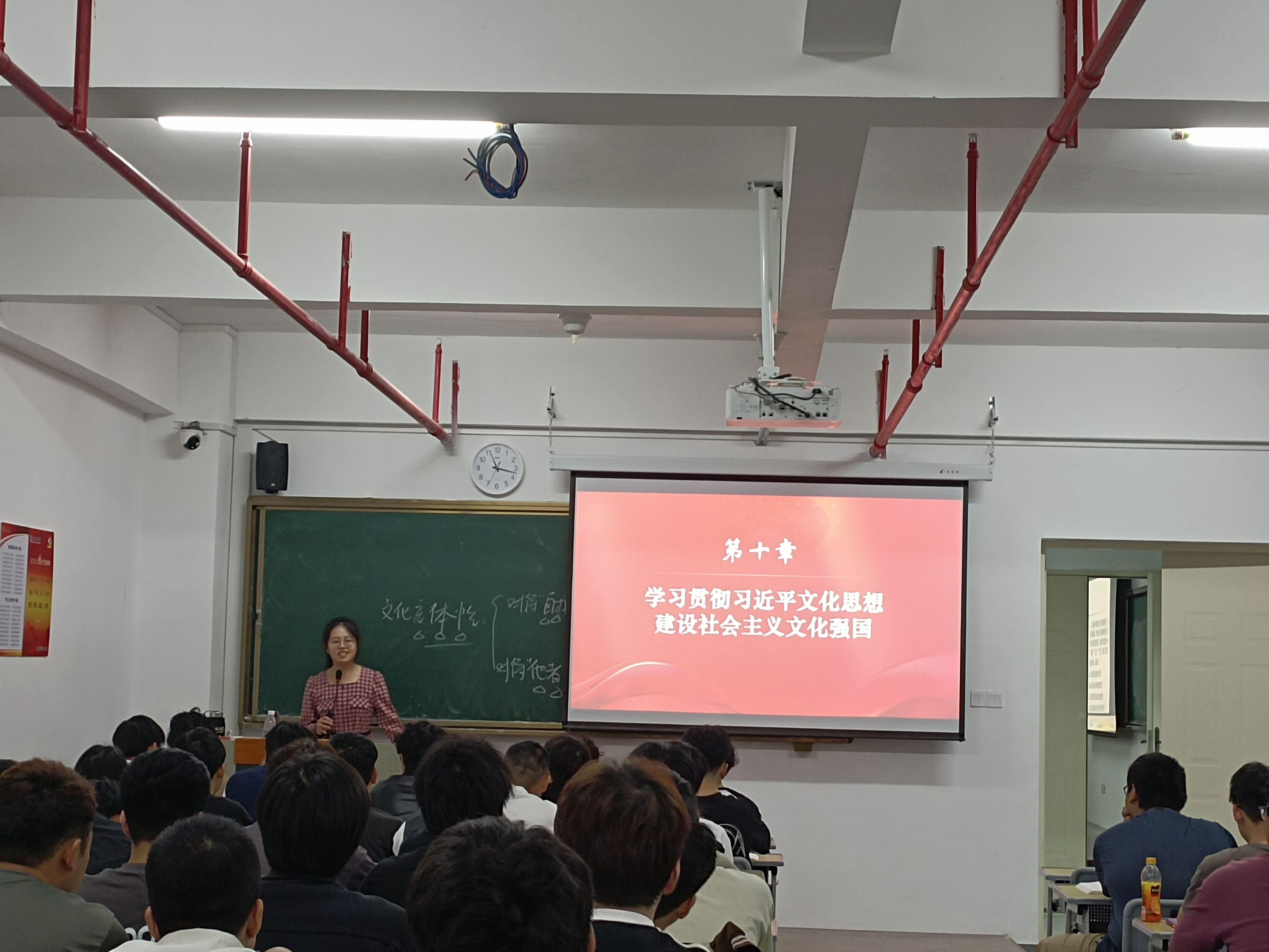 公开课由郑如玉老师主讲,参加本次教学公开课观摩的有教研部全体教师和马克思主义学院督导室成员。郑如玉老师结合学习宣传习近平文化思想,以“学习贯彻习近平文化思想 建设社会主义文化强国”为题授课。郑如玉老师以案例为导入,向学生讲解了文化是民族生存和发展的重要力量,并逐次讲授了习近平文化思想的基本框架与主要内涵,最后阐明习近平文化思想为推进中华民族伟大复兴提供了精神力量,是建设社会主义文化强国的行动指南。
