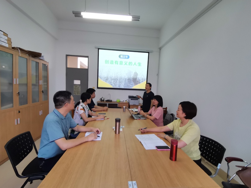 会议伊始,教研部老师围绕“如何将党的二十届三中全会精神融入课程”这一主题展开积极讨论,大家认为要充分发挥思政课主渠道主阵地作用,善于运用通俗语言、翔实数据、鲜活事例,深入宣讲习近平总书记关于全面深化改革的一系列新思想、新观点、新论断,讲深讲透讲活新时代改革开放的故事、党领导人民推进中国式现代化的故事,推动新时代党的创新理论入眼入耳入脑入心,持续增强立德树人、铸魂育人实绩实效。随后,颜雅英教授围绕“创造有意义的人生”这一教学专题进行教学设计思路的展示,还就教学重难点的突破、教学案例的运用、教学互动的安排做了重点介绍与分享。
