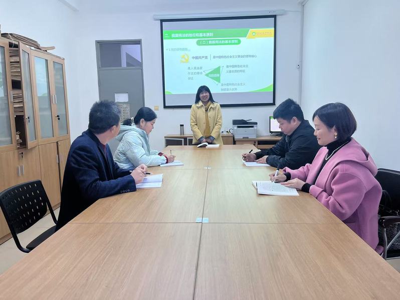 12月20日下午,思想道德与法治教研部召开“维护宪法权威”专题集体备课会。本次集体备课由教研部主任戴青兰主持,陈亚敏老师主讲,教研部教师参加。