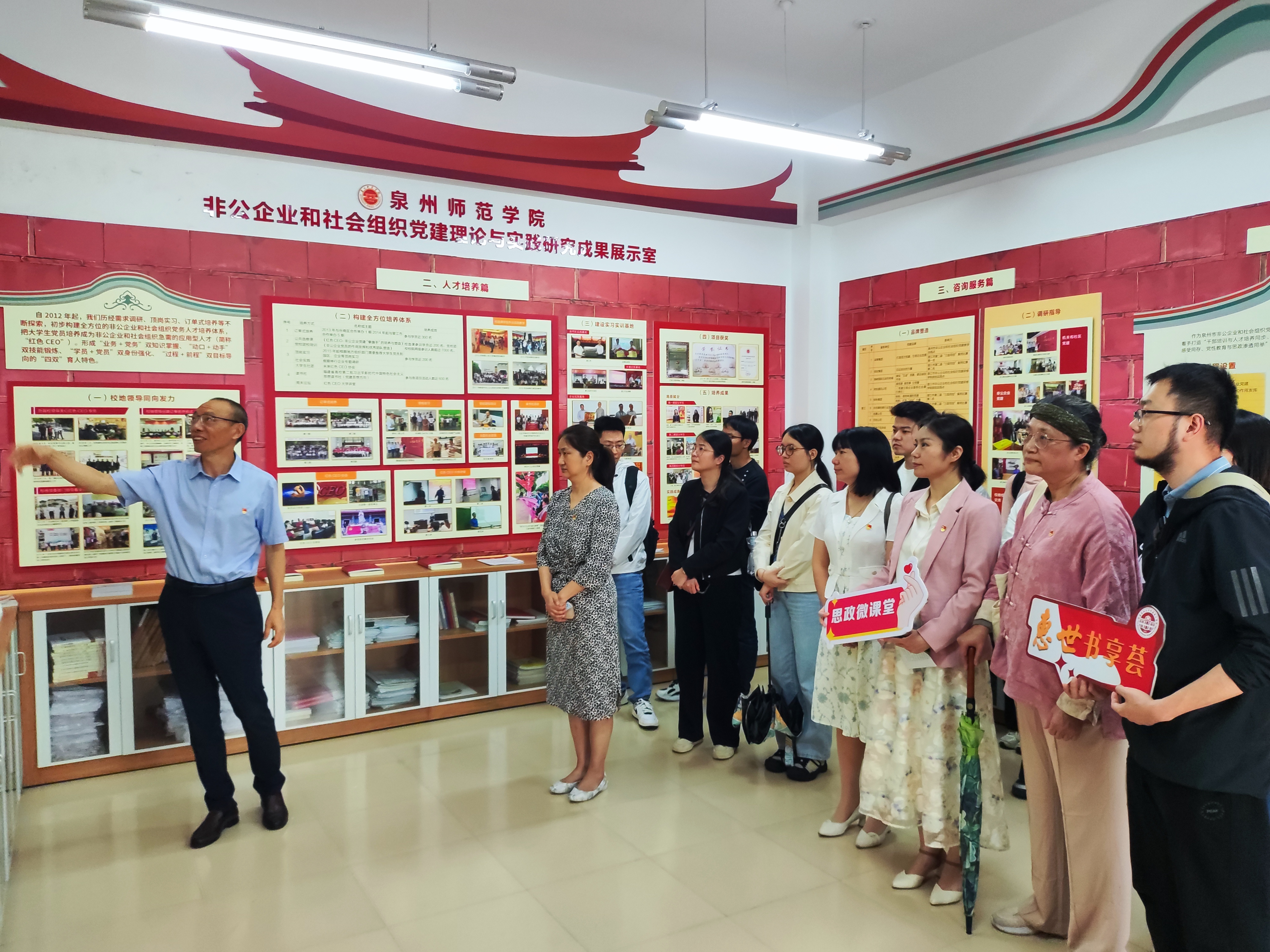 联学共建活动前,学院党总支书记颜水发带领与会人员走访参观了英国威廉希尔公司官网非公企业和社会组织党建理论与实践研究成果展示室,分享学院近年来在服务经济社会发展等方面所取得的成绩。