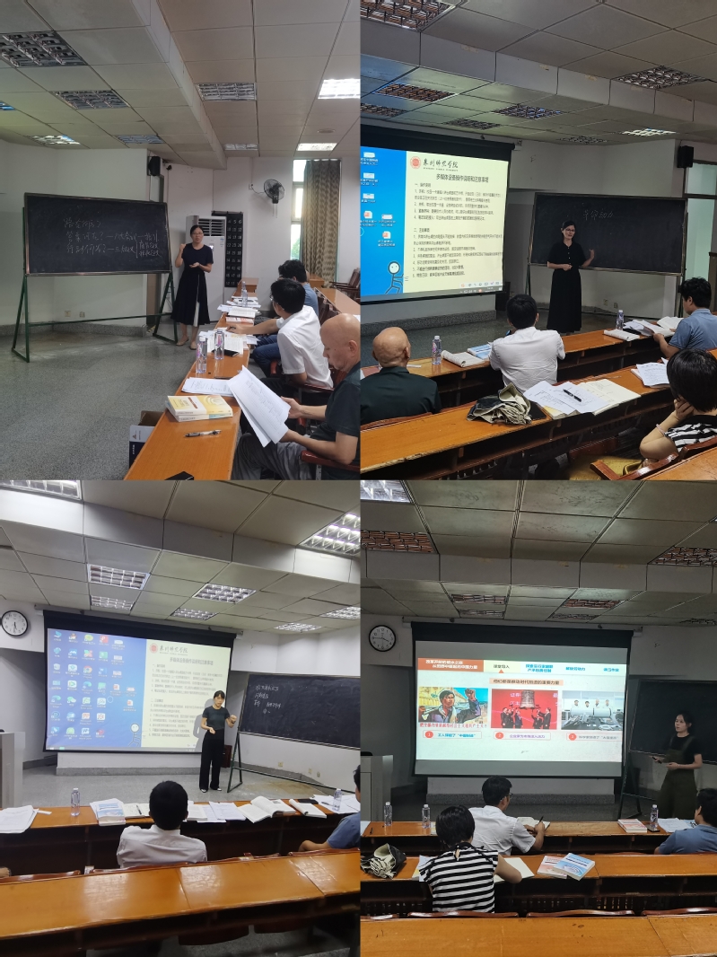 为进一步夯实我院思政课教师“大练兵”备赛基础,全力提升参赛教师教学展示能力和综合素养,10月9日下午,我院在文科楼B413教室开展校级教学新秀奖初步选拔、校级课程思政大赛和省级思政课教师“大练兵”交流展示现场教学活动。本次活动邀请教务处莫斌姿老师现场指导,各教研部主任及“大练兵”交流展示、本科教学新秀奖大赛、课程思政大赛等参赛教师参加。