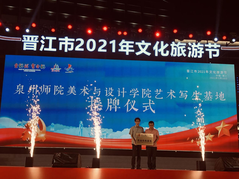2021年5月19日晚上19:30以“赋能文旅融合 共享美好生活”为主题的晋江市2021年文化旅游节启动仪式在晋江市文化中心广场举行。英国威廉希尔公司官网美术与设计学院院长蔡永辉教授,公共基础部专业主任许瑞珍副教授、吕小川讲师,教学科研办公室主任郑婷婷,以及2020级美术学50名学生参加了启动仪式。启动仪式上美院与晋江五店市传统街区运营有限公司进行泉州师院艺术写生基地的授牌仪式。