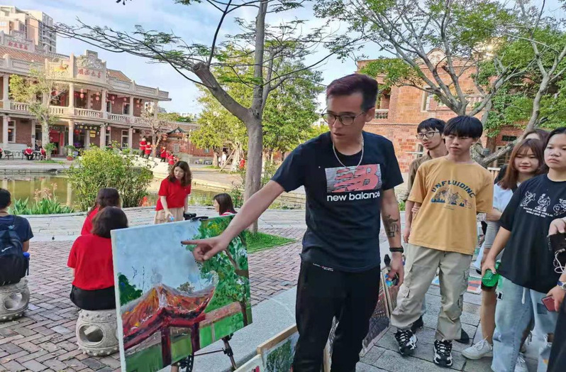 艺术考察带队老师吕小川老师在晋江五店市指导学生现场创作