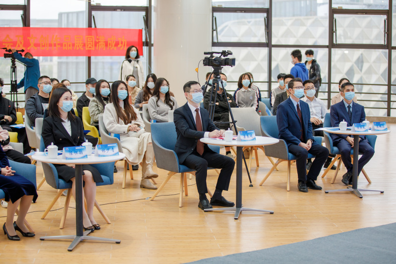 美术与设计学院副院长陈超淼副教授应邀作为本次交流会的学术主持。我院共有1位青年教师代表和8位学生代表参会。施并招老师做了题目为《地域文化视角下的泉州文创设计研究》的主题发言,从地域文化出发,介绍了我院师生结合在地文化设计的文创产品,分享了泉州文化产品的设计现状和未来的发展方向。研究生谢丽妍做《闽南非遗童谣绘本》创作分享发言,介绍童谣绘本的创作过程,并阐述了该绘本具有育人特色、品牌特色、创新特色的创作理念。