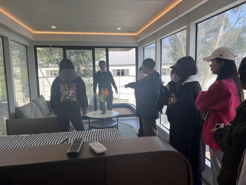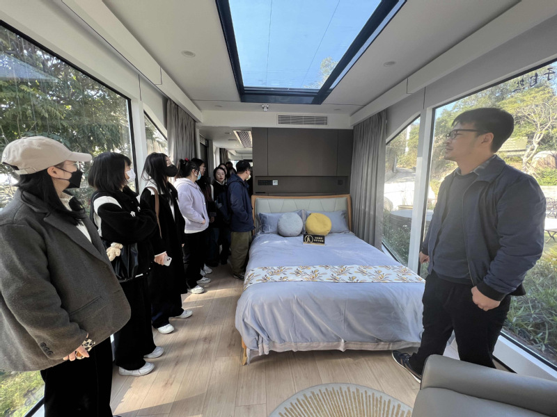公司林总亲自为我们介绍了公司自成立以来的企业概况、企业发展历程、企业产品和服务、企业创新能力、企业社会责任以及企业未来发展。产品方面,以筑可丽文旅旗下移动商业和移动度假两大系列产品为核心,为文旅地产、核心景区、商业配套、房车营地等领域提供从方案规划、场景营造、产品设计、产品制造、实施交付、运营管理等全产业链的综合服务公司负责人还带我们参观了舱体研发工厂,以及舱体制作的一系列流程,让我们更加清晰客观的了解产品生产过程。以及带学生和老师进入诗宿各个舱体内进行产品体验,了解产品的内部形态。